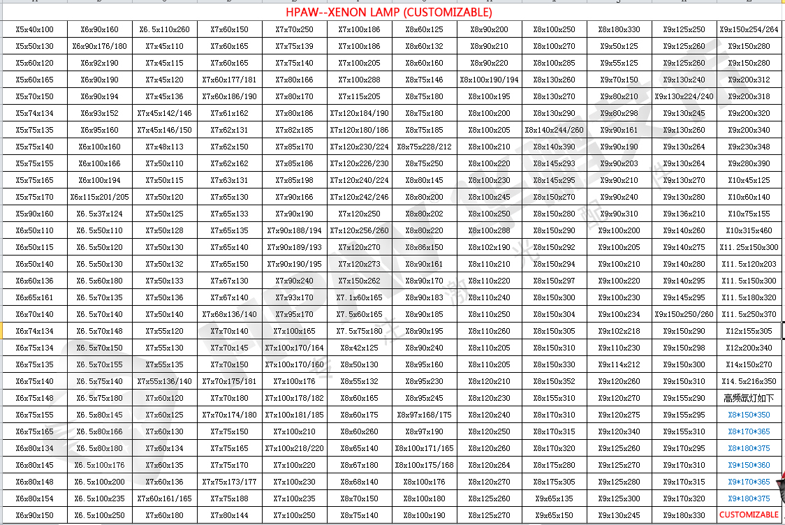 Pulsed Laser Xenon Lamp Xenon lamp with wire Pulsed Xenon lamp Laser Xenon lamp All Specifications Customizable. Please advise us the specifications you need thanks. Such as: 8x125x270 mm 8x140x280 mm 8x150x290 mm 8x170x315 mm 8x170x365 m...